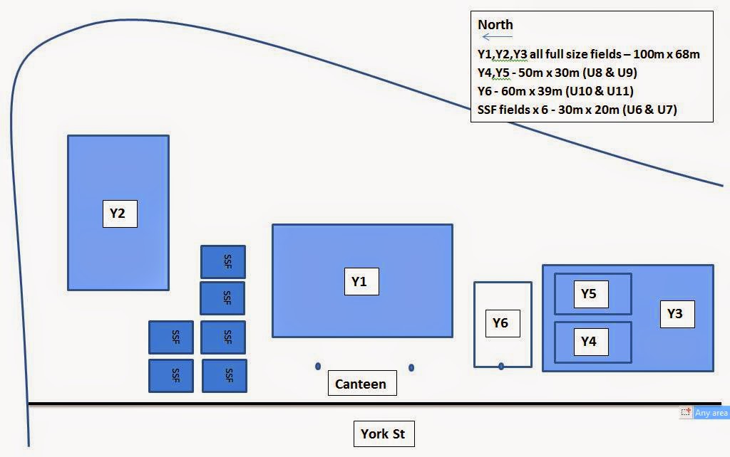 The image below shows the new field layout at York St (effective Saturday 28th June 2014)